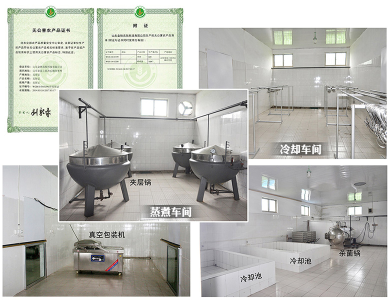 山東金秋農(nóng)牧科技股份有限公司建于2010年,專門對(duì)汶上蘆花雞精深加工,先后研發(fā)出蘆花燒雞、蘆花三寶、腌雞蛋等十幾個(gè)產(chǎn)品。公司遠(yuǎn)離城市污染,保證了產(chǎn)品的安全、綠色,現(xiàn)代化的禽類屠宰和熟食加工生產(chǎn)流水線完全滿足了“QS”生產(chǎn)的要求,完全符合出口食品加工(HACCP)標(biāo)準(zhǔn),2010年5月牽頭起草了《汶上縣蘆花雞標(biāo)準(zhǔn)》,并在省質(zhì)量技術(shù)監(jiān)督局備案。2014年被評(píng)為“無(wú)公害農(nóng)產(chǎn)品”和“山東老字號(hào)”稱號(hào),并通過(guò)了食品安全管理體系22000認(rèn)證。2015年被評(píng)為“食安山東”全省性畜牧示范品牌帶領(lǐng)企業(yè)。